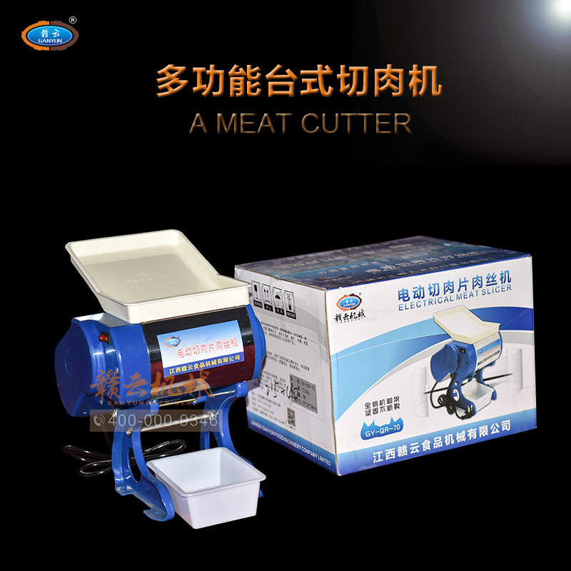 小型臺式電動切肉機主要是切豬肉、牛肉、羊肉、鹵菜等肉類加工的理想產品,廣泛應用于鹵菜加工商販、食堂、飯店等場所。切肉機頭內切肉刀片一共有36片圓形刀片,均等分布,切肉刀片間距為3.5mm,也有刀片間距為2.5mm的切肉機,歡迎選購