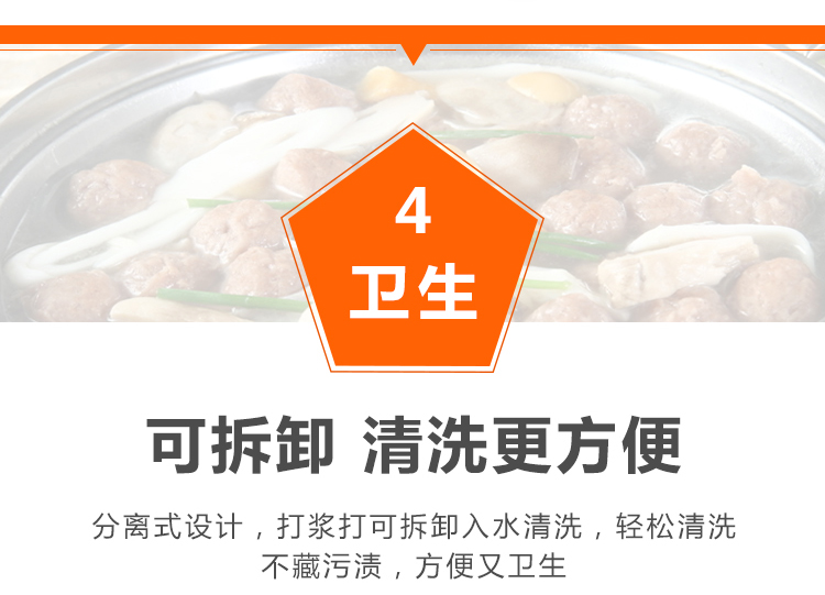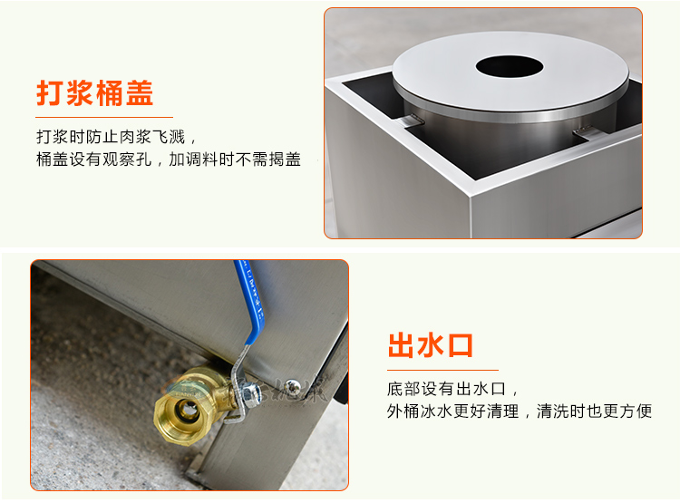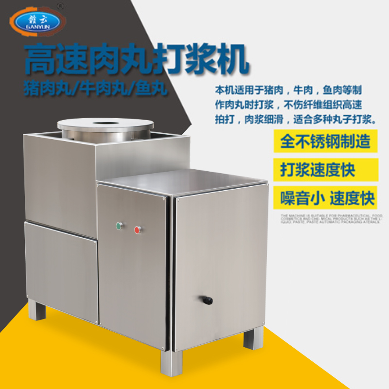 高速打漿機選用全不銹鋼制作,開機2-3分鐘即可完成打肉、配料,攪拌成漿。針對魚肉豬肉的纖維組織,高速生產過程中改善了肉質脂肪纖維,生產出的丸子外表光滑細嫩、低脂、口感爽脆,彈性好,韌性好,是潮州魚、肉丸的專用打漿設備。此款肉丸高速打漿機還可以連續投料打漿,效率高,打漿效果好,根據肉丸生產產量需求可定做,因此深受肉丸加工廠家青睞設備!