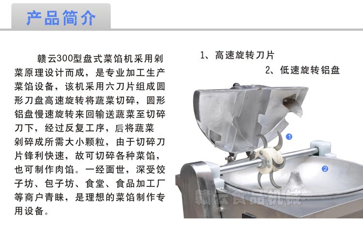我廠生產的CX-300型菜餡機,主要將各種根莖葉類蔬菜加工成餡狀,是面食加工業制作蒸包餡、水餃餡和飼養加工蔬菜飼料的搭配設備。