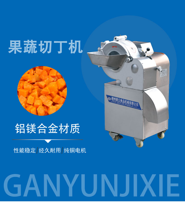 GY-QD-130型專用切丁機主要部件采用鋁合金和不銹鋼材質,以保證長期工作不生銹、不腐蝕、無毒、無害,符合食品衛生加工要求,適用于脫水蔬菜、速凍蔬菜加工及食品醬菜行業加工各種根、莖類蔬菜成小立方體或長方體形狀,該機采用復合刀具,一次成型,形狀規則、切片光滑,成型效率高,操作方便、能耗低,深受食品加工伙伴青睞。