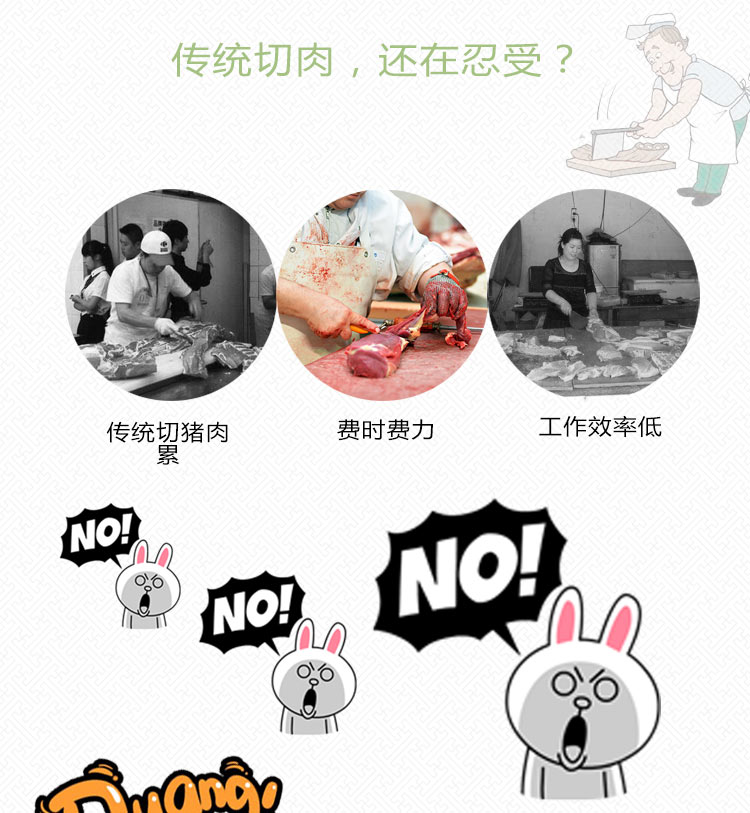 砍骨頭難,砍骨頭累,費勁,耗時,不美觀,這也就罷了,還要付著昂貴的薪水給員工們,賺著不著邊不著地的辛苦錢,做贏難,做老板更難?是這個理嗎,you out 了,親,你落伍了,趕緊請贛云牌商用鋸骨機幫你忙,硬骨頭、凍肉、整只羊、大水牛頭很硬嗎?不一定吧,看神機怎么把這些硬骨頭輕松搞定,幫你省大把大把的工錢,提升你的工作效率和質量,產品更美觀,訂單不間斷,生意越做越大,鈔票越滾越多,當老板的你天天都有好心情。