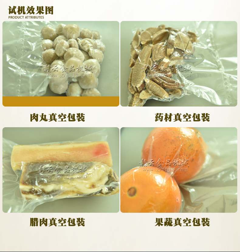 3、壓下真空蓋,面板上的抽氣指示燈亮,真空泵開始抽氣,機蓋即被自動吸引,抽真空時間可根據包裝要求調節適當時間。