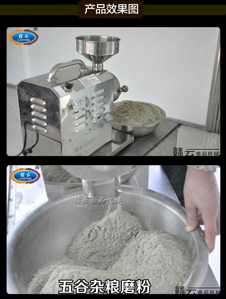 贛云不銹鋼磨粉機有1100型、2200型和3000型三種型號,這款是3000型不銹鋼磨粉機,造型外觀和2200型相同,采用干濕磨盤以及全不銹鋼構架,外形美觀大方,亮光,不銹鋼色澤清洗,采用3kw大功率純銅電機帶動磨盤轉動,磨粉細度可調,適合磨不同粗細的五谷,米漿等。