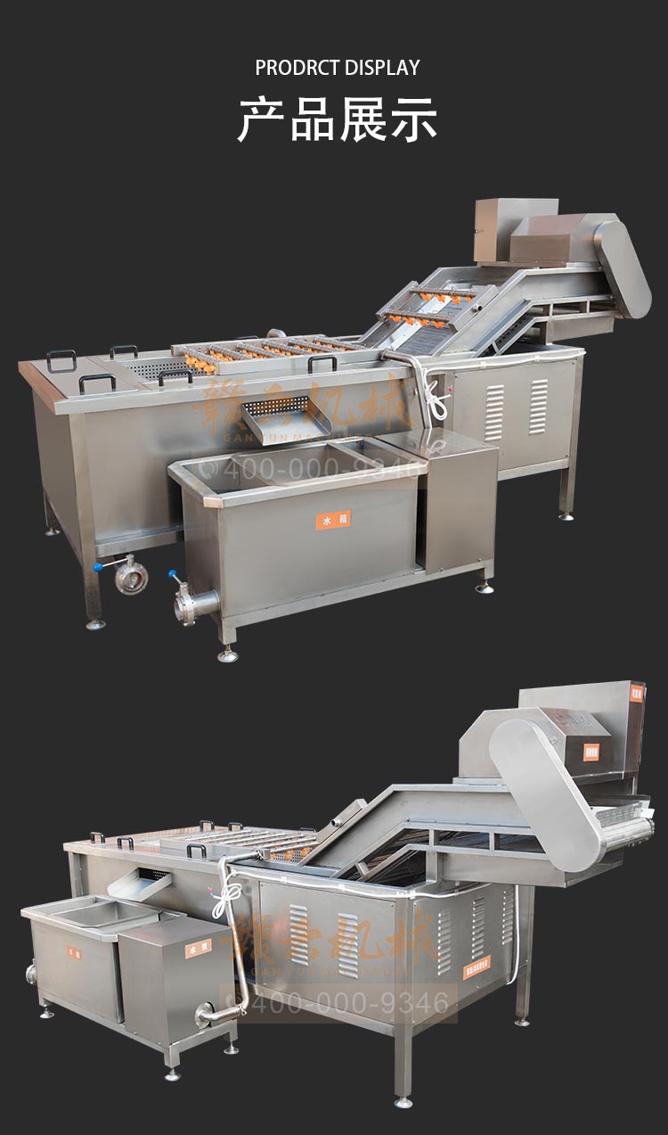 蔬菜清洗機有效的殺滅有害細菌,分解殘留農藥;通過清洗水循環利用,可節約80%的清洗用水用于清洗蘑菇、芹菜、菠菜、白菜等莖葉類蔬菜以及蘋果、西紅柿、辣椒、茄子、黃瓜、草莓等果蔬的主要設備,廣泛適用于蔬菜加工行業及廠礦、部隊、醫院、各大專院校等單位的食堂。