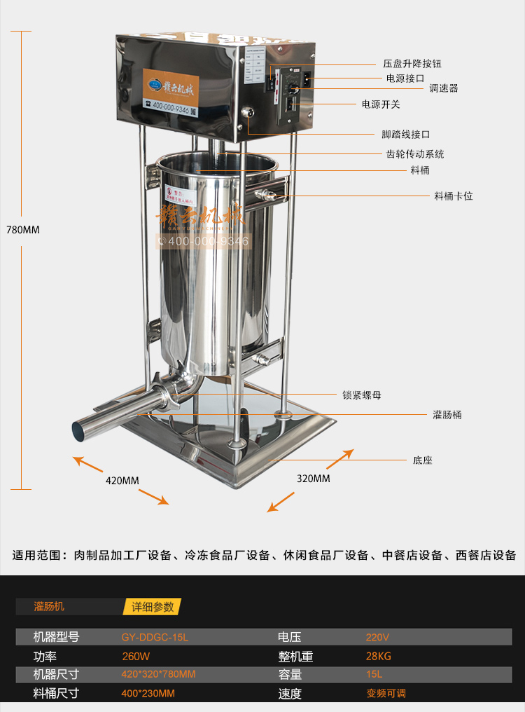 主頁-> 肉制品前處理->專用灌腸設備->電動灌腸機15L