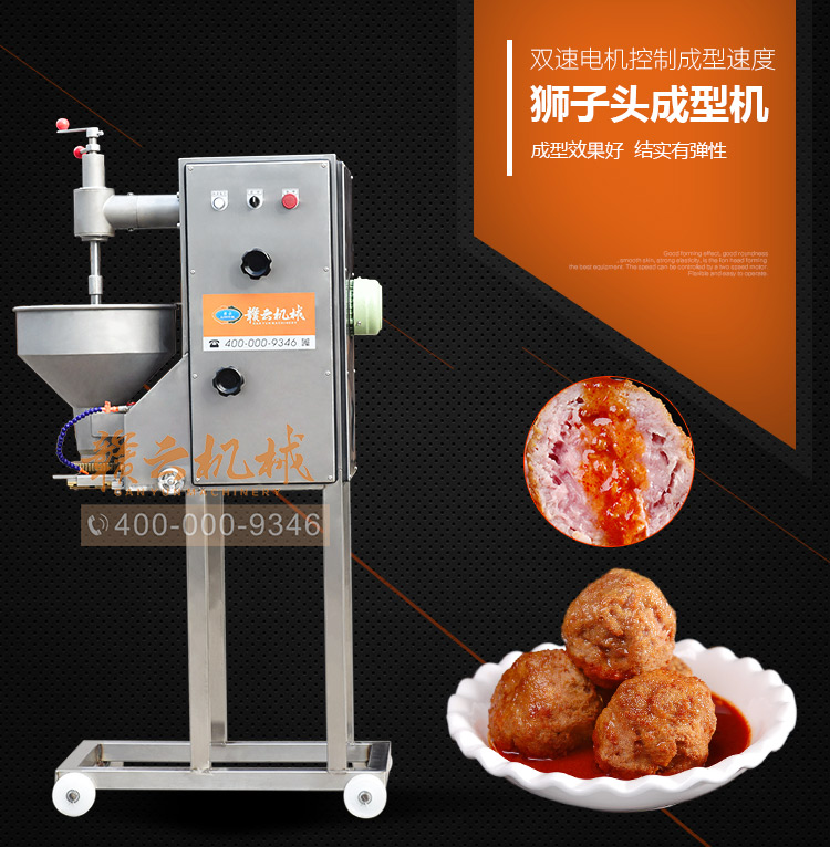 獅子頭成型機是我司研發的有一款適合大肉丸成型的設備,如寧都大肉丸,獅子頭,該機采用雙速電機分別控制進料速度和切割速度,調節更人性化處理,適合不同稀稠度肉漿的成型,是寧都大肉丸、獅子頭成型的好幫手。