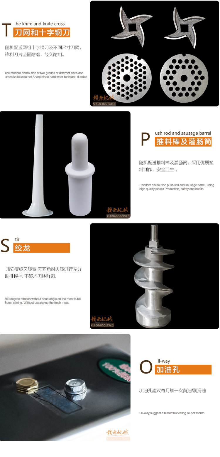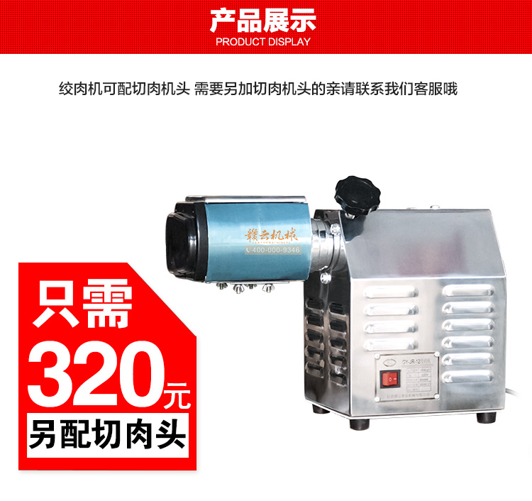 贛云臺式電動12型絞肉機,出新款了,簡介美觀的外形設計,配備650w大功率純銅電機,有效確保動力充足,可絞各種肉類,干貨,鮮蔬等食品