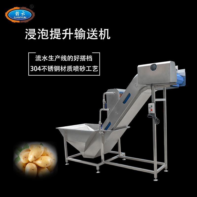 本機主要起提升和輸送的作用,浸泡清洗機是由水箱和提升機組合而成的機械,物料先倒入水槽后浸泡,在由提升機進行提升給下一道工序。解決人工入料困難的問題;在流水生產線中,該設備通常和其他入料口要求高的設備搭配使用,滿足生產的自動化的需要。該機具有操作簡便、結構緊湊、造型美觀、維修方便等優點
