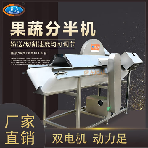 切半機主要用于果蔬類蔬菜加工?蓪A形,橢圓性,長條形,等物料,切割成兩半。該設備常用于以下一些場所,泡菜加工,果蔬類加工廠,政府機關單位,無刀化廚房等。該設備物料切割勻稱,分半大小一致,大顆的白菜蘿卜冬瓜都可一次性分割成兩半。是果蔬加工行業的好幫手