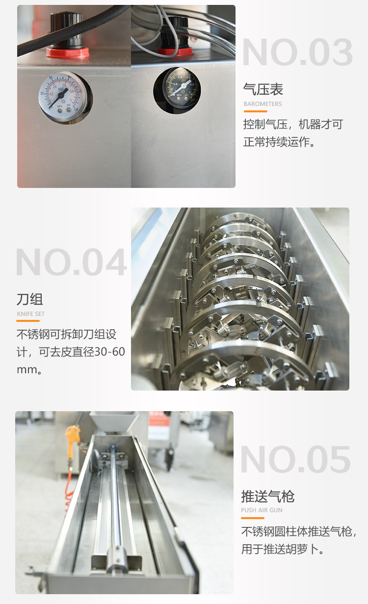2.仿人工削皮設計,削皮后的物料表面平整光滑