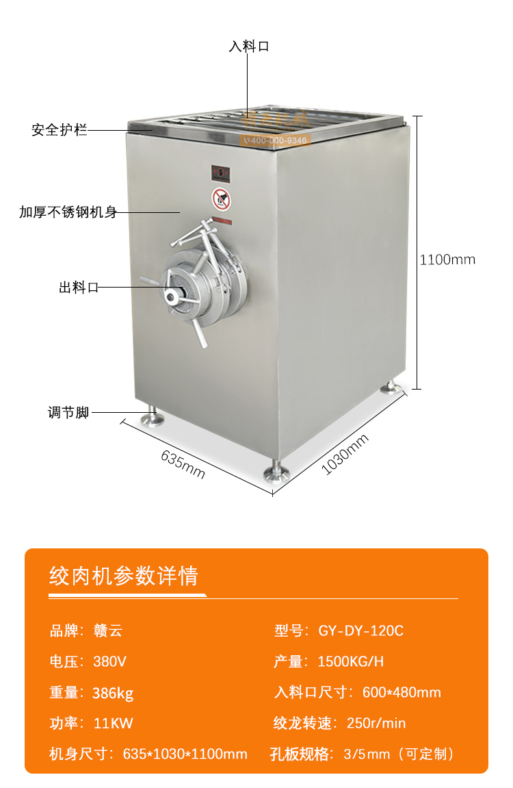 主頁-> 肉制品前處理->凍肉加工設備->120型強力凍肉絞肉機