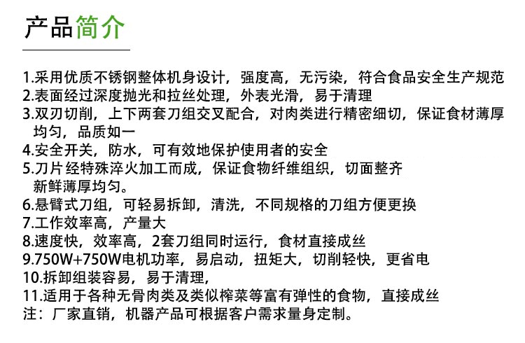 鮮肉開(kāi)片分層機(jī)[視頻] 鮮肉一次切塊機(jī)[視頻] 550切肉丁機(jī)(帶[視頻] 單通道鮮肉切片機(jī)[視頻] 500平行開(kāi)條機(jī)[視頻] 550型切肉丁機(jī)[視頻] 連續(xù)式切肉片肉絲機(jī)[視頻] 高速自動(dòng)切花機(jī)[視頻] 平行開(kāi)條機(jī)(鋸齒刀[視頻] 鮮肉水平開(kāi)片機(jī)[視頻] 350型切肉丁機(jī)[視頻] 平行開(kāi)條機(jī)(平口刀[視頻] 輸送式鮮肉切片機(jī)[視頻] 120D切熟肉機(jī)[視頻] 雙路連續(xù)式分半機(jī)([視頻] 500型去筋膜機(jī)[視頻] 熟肉切片機(jī)(實(shí)用款[視頻] 330平行開(kāi)條機(jī)[視頻] 360型切肉絲機(jī)[視頻] 200D切肉條機(jī)[視頻] 切塊機(jī)[視頻] 切肉片機(jī)[視頻] 鮮肉切絲機(jī)[視頻] 豬皮去油機(jī)[視頻] 切肉條機(jī)(380V[視頻] 鮮肉切片機(jī)[視頻] 2160型切絲機(jī)([視頻] 435型商用豬肉自[視頻] 切肉絲含絞肉一體機(jī) 180型切肉機(jī)(不[視頻] 2200型切肉絲機(jī)[視頻] 全自動(dòng)羊肉切片機(jī)[視頻] 工程款切肉機(jī)[視頻] 1100型切肉絲機(jī)[視頻] 盆式脫卸絞切機(jī) 85型肉片肉絲機(jī)([視頻] 190不銹鋼切肉機(jī) 精裝立式切肉機(jī)[視頻] 豪華立式切肉機(jī)