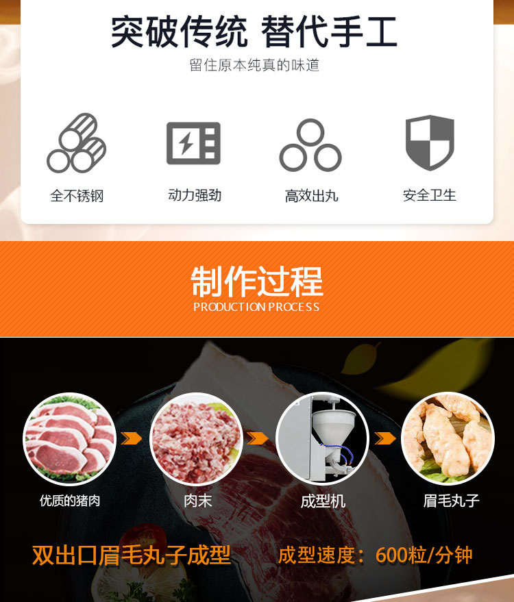 肉丸成型機(jī)械->實(shí)心肉丸機(jī)->變頻雙眉毛丸子成型機(jī) | |||||||