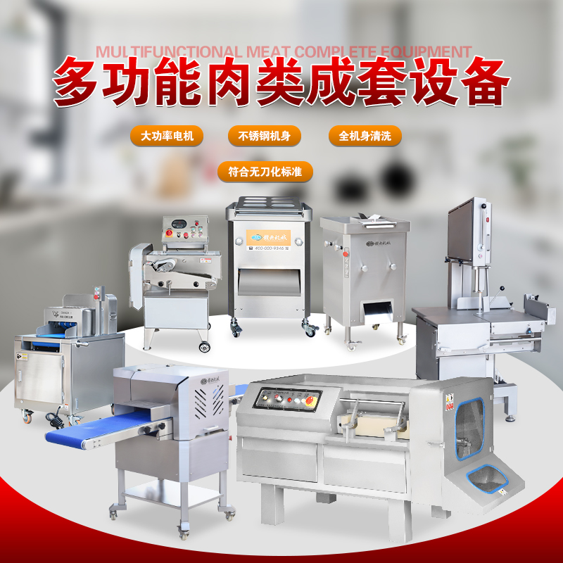 無(wú)刀化肉類加工設(shè)備,一套符合無(wú)刀化加工標(biāo)準(zhǔn)的肉類切割設(shè)備:大型自動(dòng)鋸骨機(jī)、智能切塊機(jī)、120A智能砍排機(jī)、360型切肉絲機(jī)、300型切肉片機(jī)、350型平行開(kāi)條機(jī)等等。