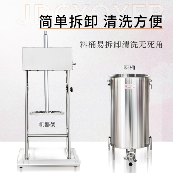 贛云機械電動灌腸機采用不銹鋼材質,灌腸機可以單人操作,實現輕松灌腸機,下料裝置是由推料盤和密封圈組成,通過電動驅動,均速下推力,讓下料穩定漿料不粘桶壁。機器適用物料范圍較廣,無論是四川香腸,湖南臘腸,脆皮腸,山東香腸,廣式臘腸,河南臘腸都可以輕松灌制