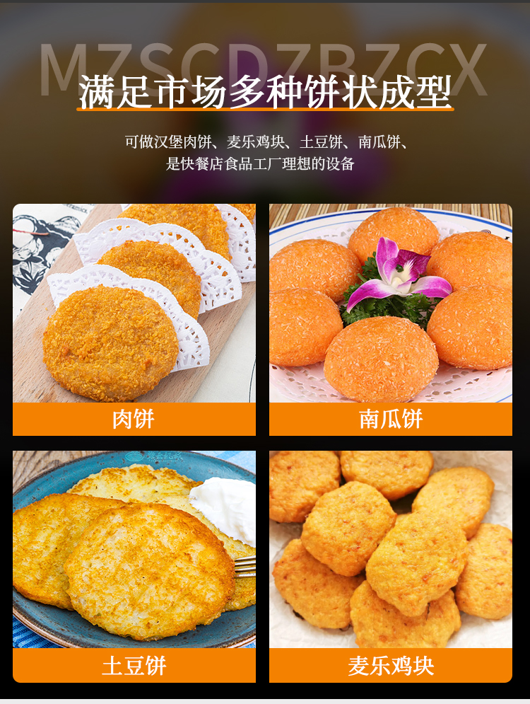 加工生產漢堡肉餅、麥樂雞塊、土豆餅、南瓜餅等食材。