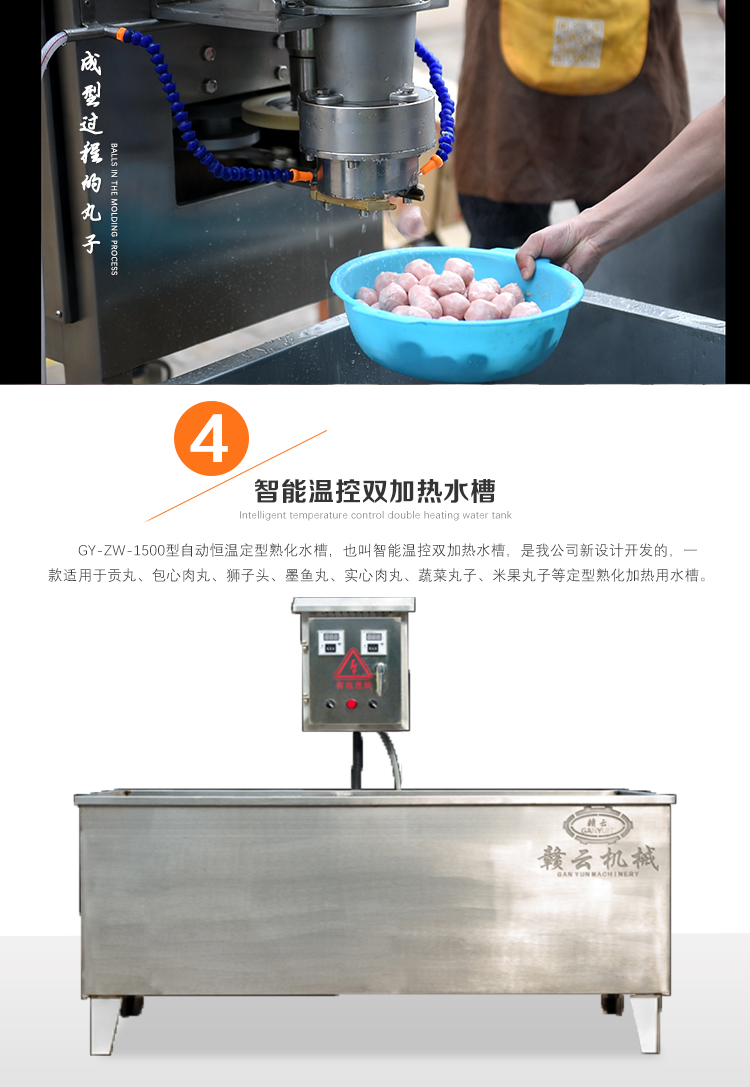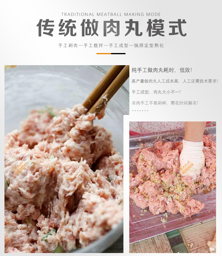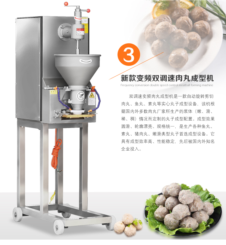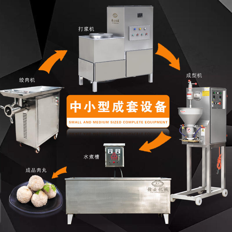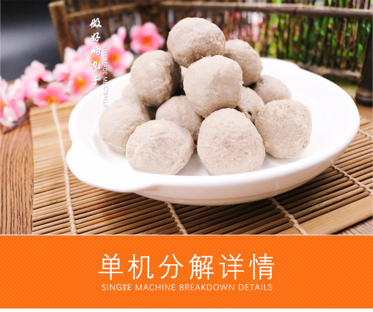用于肉類的絞肉、打漿及肉丸的成型和熟化,可生產各類牛肉丸、素丸、魚丸、豬肉丸、火鍋丸子等各類實心丸子。