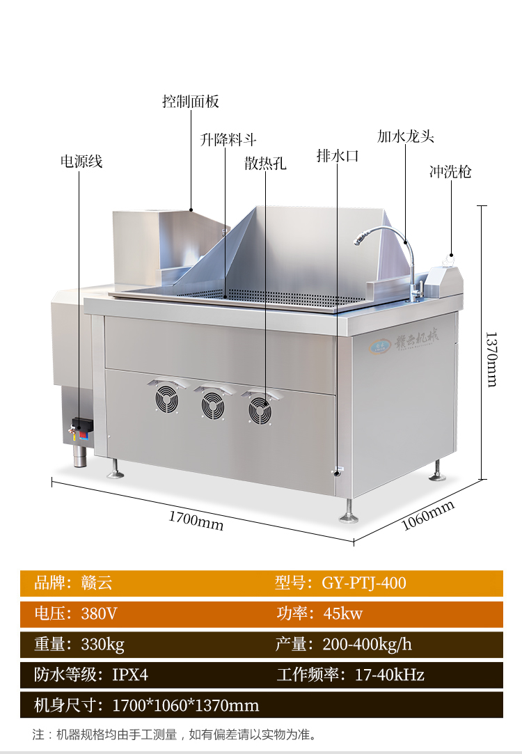 中央廚房設(shè)備->熱調(diào)理區(qū)設(shè)備->400L方形自動(dòng)漂燙機(jī)/焯水/油炸機(jī) | |||||||