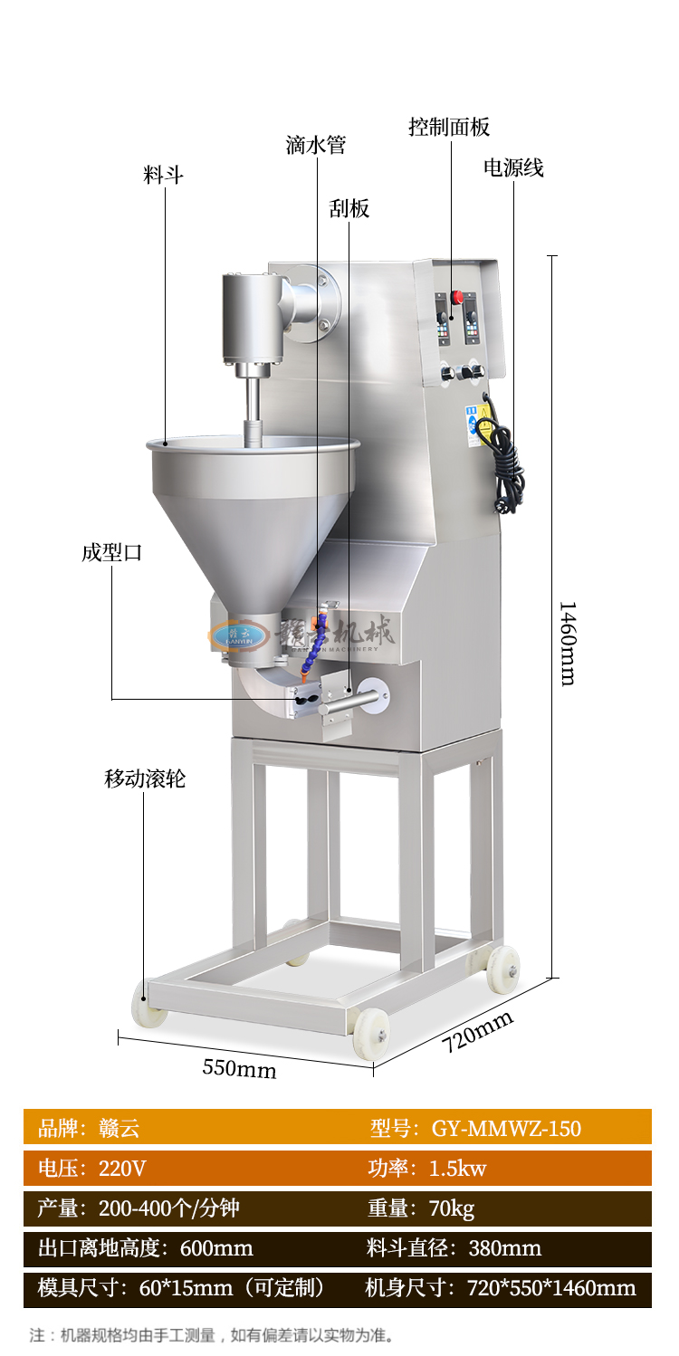 適用于加工成型:眉毛丸子、福鼎肉片、肉羹條、瘦肉羹、潮汕蝦棗等。