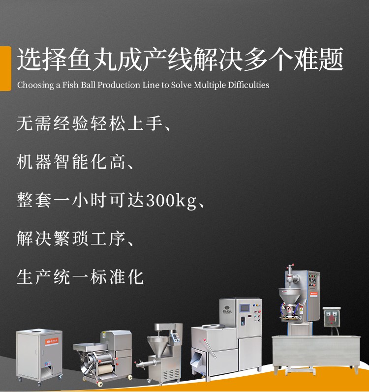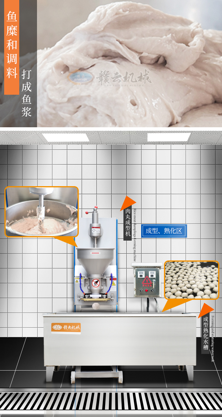 本套設備從殺魚、采肉、魚糜精濾、魚肉打漿、魚丸成型到最后的熟化。
