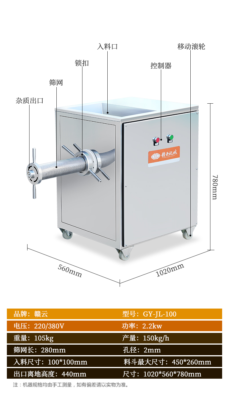 主頁-> 水產加工設備->魚肉加工設備->100型魚糜精濾機