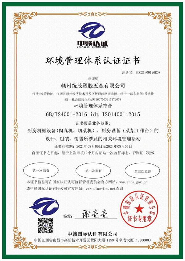 環(huán)境管理體系認證證書