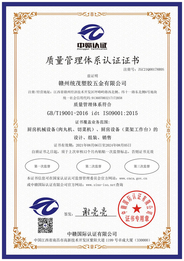 質量管理體系認證證書