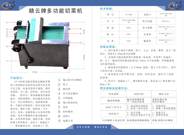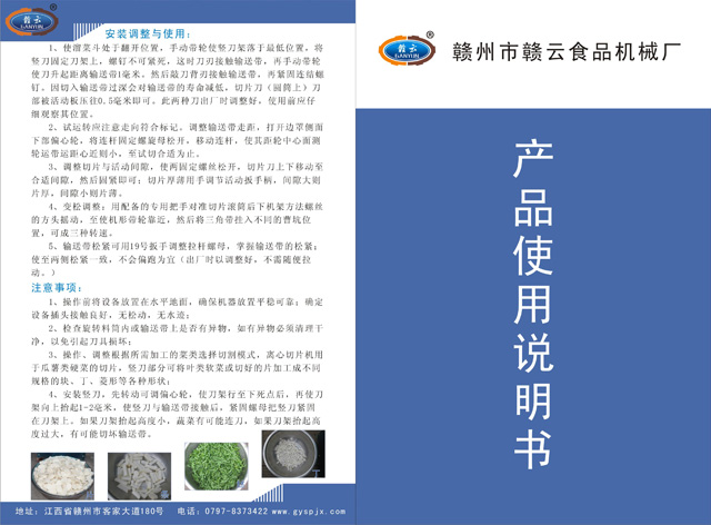 選擇贛云牌多功能切菜機,選擇贛云,選擇專業,所以放心,贛云牌多功能切菜機視頻實拍地址:贛州市贛云食品機械廠門市銷售部(贛州市客家大道180號)視頻播放地址:http://www.shuguangxingsheng.com/play1.asp?ProductID=959