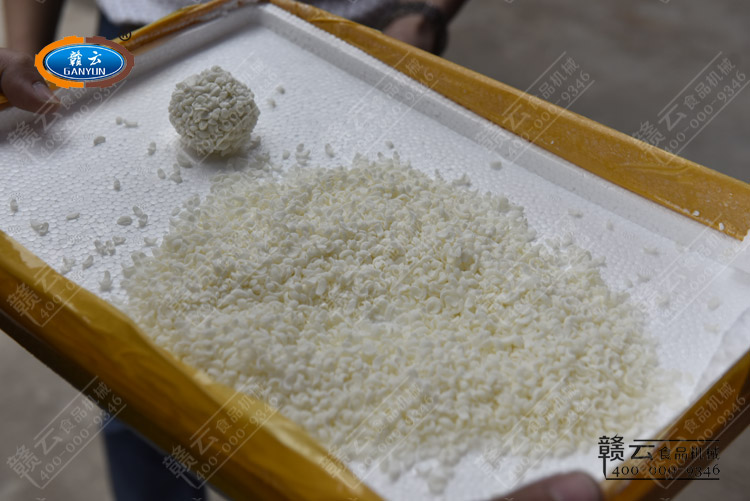 小編在贛云有幸一睹了蟹黃魚丸的制作,包心蟹黃魚丸,來自江蘇省南通市如皋地區的顧先生自帶蟹黃魚丸用的魚漿、蟹黃,和膨化米片等材料,試機制作包心蟹黃魚丸,繁雜瑣碎的工藝在三代包心肉丸機的面前變得如魚得水。下面我們來看看這次試機實拍圖片:
