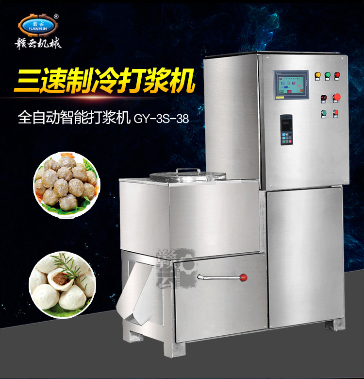 贛云2016推出38型新款三速制冷打漿機(jī),集低、中、高三種速度合一,配備對應(yīng)的三種刀組,結(jié)合高效的壓縮制冷系統(tǒng)、程序觸摸操控系統(tǒng)、打漿桶溫控感應(yīng)報警停機(jī)系統(tǒng),獨(dú)家設(shè)計(jì)閥門流水式出料,專為中小型肉丸加工廠和大型肉丸廠實(shí)驗(yàn)室打漿設(shè)備量身打造之用。適合各式肉丸制漿,是未來全能智能打漿典型代表作品。