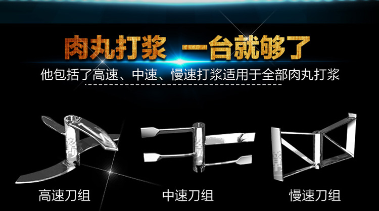 采用低速刀打漿可打10-20分鐘,制作出彈性非常好的肉漿,產(chǎn)量可達(dá)150kg/h. 適合中小型肉丸加工廠和中大型肉丸加工廠實(shí)驗(yàn)用制漿設(shè)備。