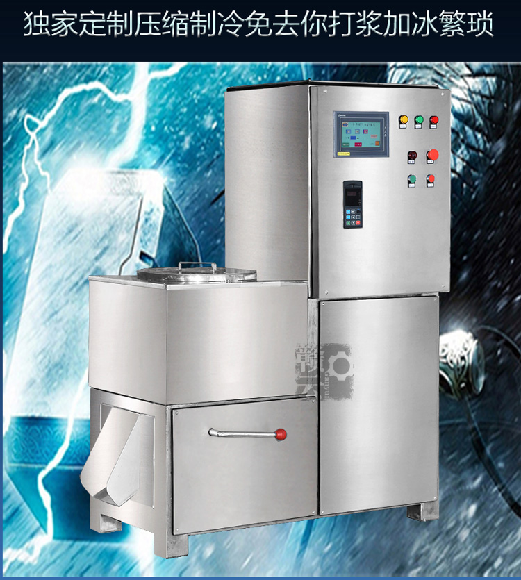 壓縮制冷系統(tǒng)的配備,解決了新鮮肉類制漿過程中需要加冰的繁雜過程,一鍵啟動,制冷效果迅速,桶壁結(jié)冰快。獨(dú)家的流水式出料閥門設(shè)計(jì),更適合較稀肉漿的制漿,密封性好,且不影響打漿過程,操作方便,省時省力。