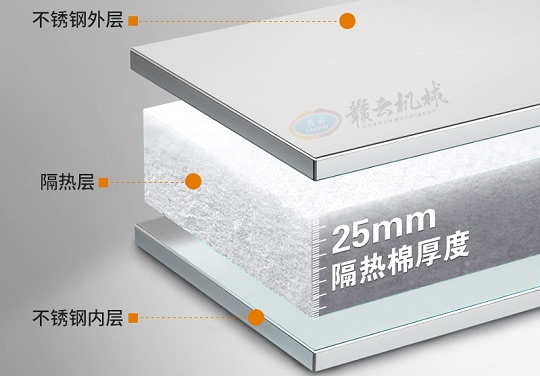 贛云智能鹵煮線設(shè)計(jì)了大容量池,采用大功率加粗發(fā)熱管確保能夠快速均勻的加熱,縮短了鹵煮時(shí)間。整體板材以加厚食品級(jí)不銹鋼材質(zhì)制造,這樣確保設(shè)備的堅(jiān)固耐用和食品衛(wèi)生。鹵煮線使用25mm加厚保溫層,保障設(shè)備在運(yùn)行鹵煮過程中的溫度穩(wěn)定,且不會(huì)因?yàn)楦邷赜绊懙诫娐穼舆能防止設(shè)備外層溫度過高,避免燙傷。