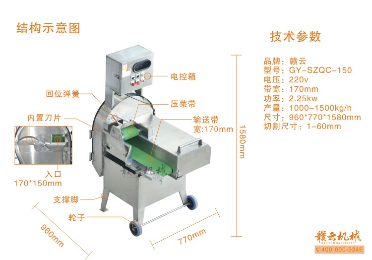 行業的發展離不開市場的調控,同樣產品的發展離不開企業的戰略的實施。贛云食品機械有限公司生產的切菜機之所以得到市場的認可,很大程度上是得益于企業對切菜機的重點發展以及產品的特殊功能,一機多用操作簡便。本機實用造型新穎,清洗方便,干凈衛生,質量可靠,適用于餐廳、飯店、飯店、餐廳等。它采用了體積小、切菜規整,噪音低,操作簡單,外觀整齊,因為很多人對于吃的方面追求完美的,而150型切菜機對于切菜方面剛好可實現這一功能,所以深受大眾喜愛。