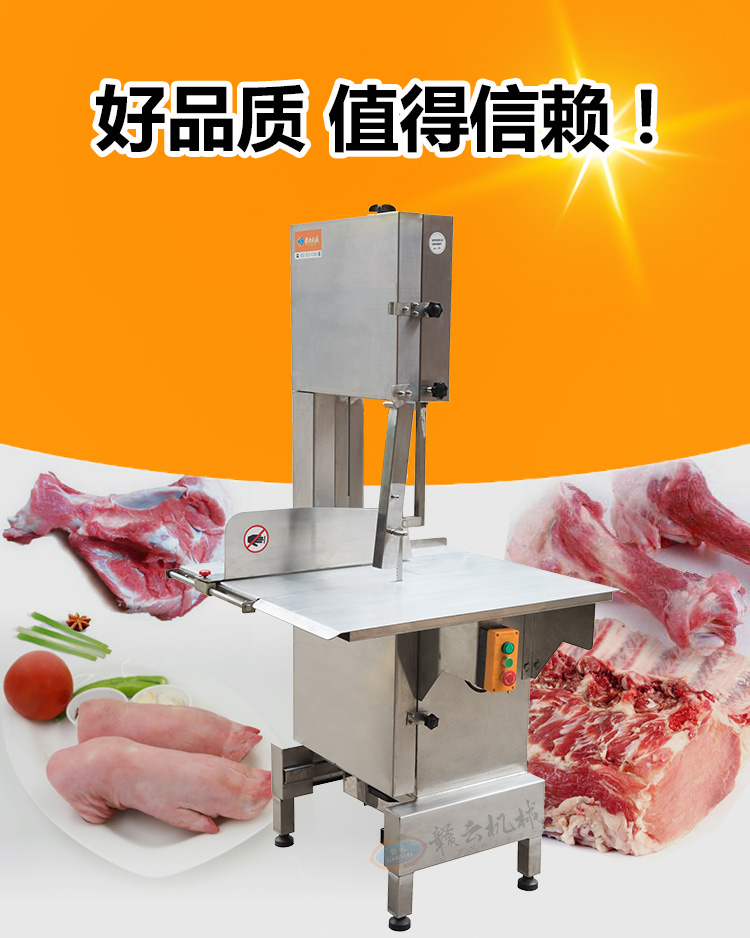 鋸骨機工作臺采用可以滑動的臺面助推系統,使操作更加輕松,驅動機構布置合理,鋸帶的張緊裝置能把張力調整到最佳的狀態,帶傳感器安全自停開關,上下升降的鋸條帶有保護罩,電動鋸骨機防水安全插座,鋸條上下布置選用優質不銹鋼材料制造,電動鋸骨機使用壽命長加工產品厚度可調節,可以滿足不同客戶的訂單。