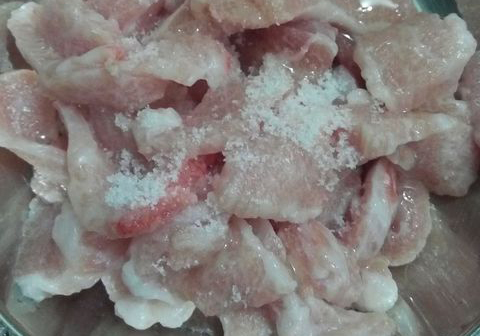 腌制時加入鹽分使肉組織部分脫水,同時由于腌肉產生的滲透壓,制止了有害微生物的生長繁殖,從而達到防腐的目的。