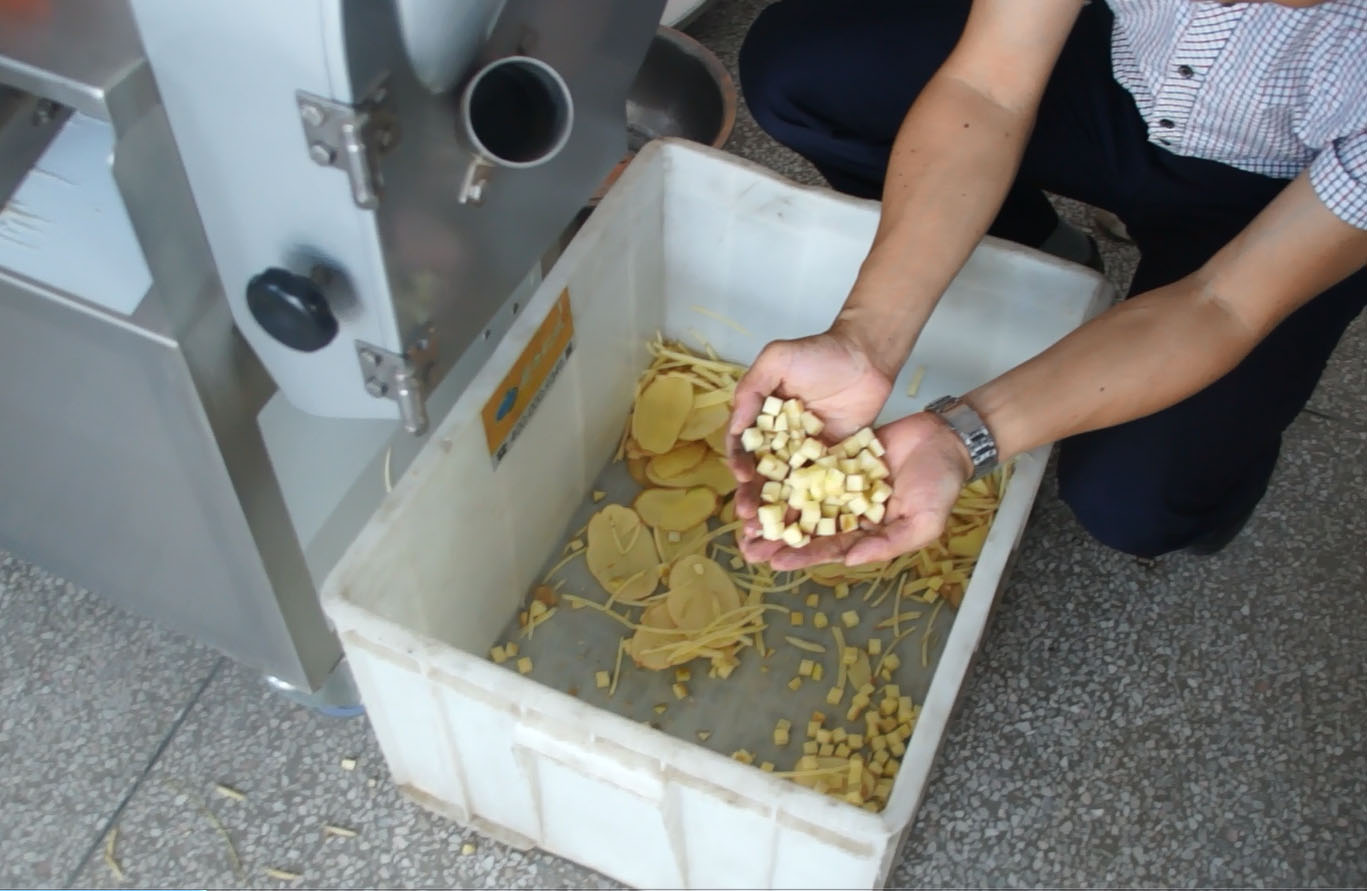 本次客戶一共試了兩款機器,其中一款是多功能切菜機,此款多功能切菜機可以根據自身要求調整,能夠切丁,切片,切絲等多種功能。以下是切菜機效果。