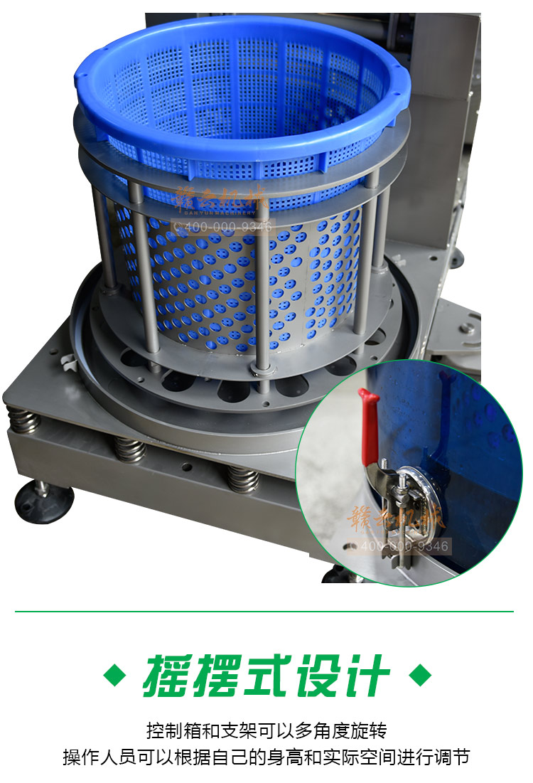 (4) 籃筐式脫水。接料方便,非傳統的袋裝脫水,有利于保護原料。
