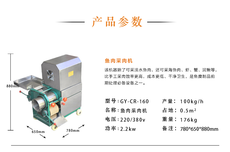 GY-CT-006型實心魚丸成套設備由:新款160型魚肉采肉機、32型慢速肉丸打漿機、160型實心肉丸成型機和1500型雙槽加熱水槽四臺設備組合而成,是小作坊式專業加工生產實心魚丸設備。