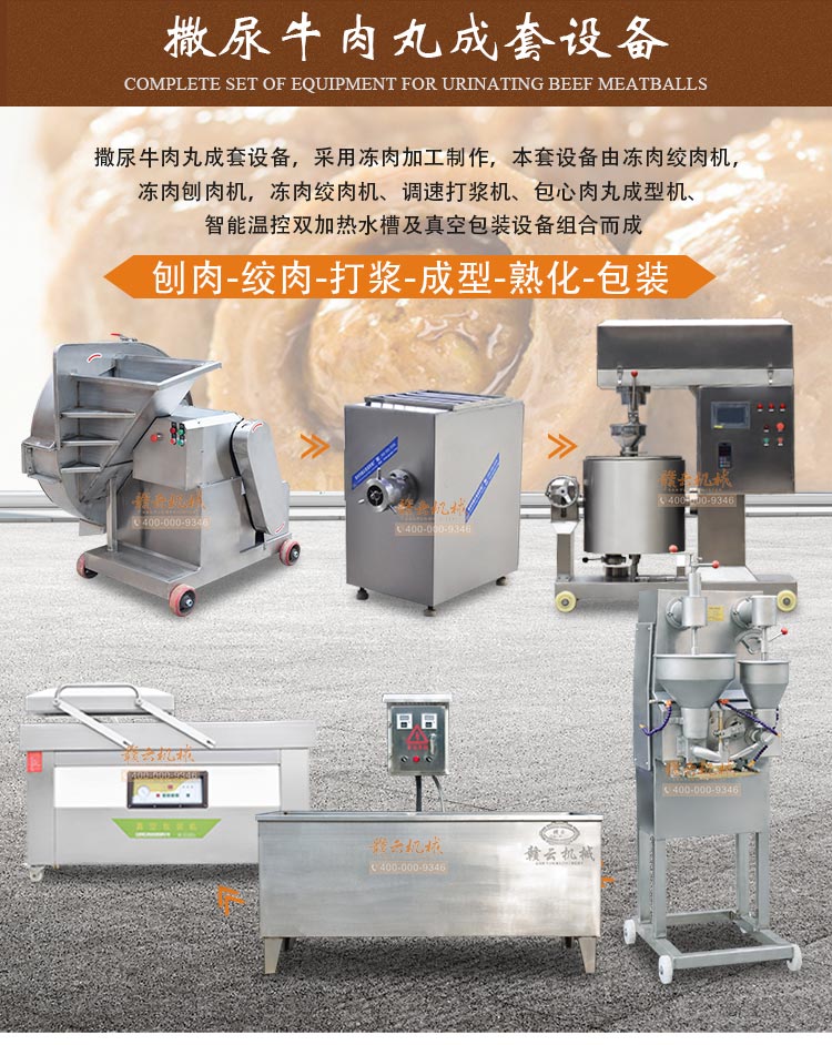 多種包心肉丸成套設備,撒尿牛肉丸成套設備組合,采用凍肉加工制作,本套設備由凍肉絞肉機,凍肉刨肉機,調速打漿機,包心肉丸成型機和自動煮丸水槽及真空包裝設備組合而成。