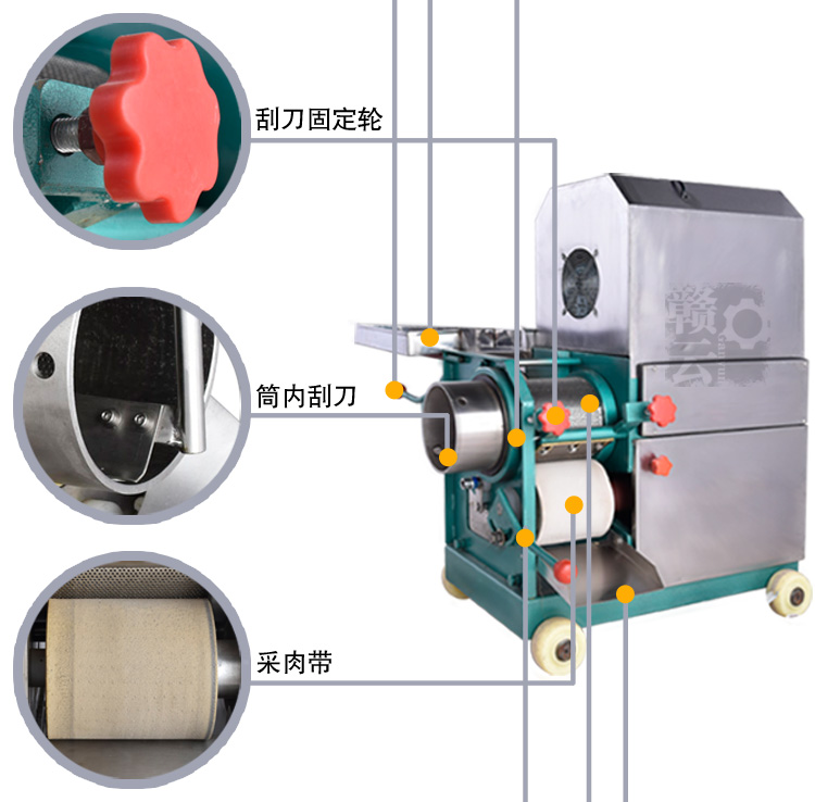 贛云牌魚肉分離機(jī)又稱之為魚肉采肉機(jī)、魚糜采取機(jī)、蝦殼分離機(jī)、去魚骨機(jī)、泥鰍采肉機(jī)、去魚刺機(jī),通過擠壓原理將魚肉和魚骨等分離開來,魚肉采肉前需漿活魚去頭部和內(nèi)臟。贛云牌魚肉分離機(jī)有普通材質(zhì)和不銹鋼材質(zhì)之分。