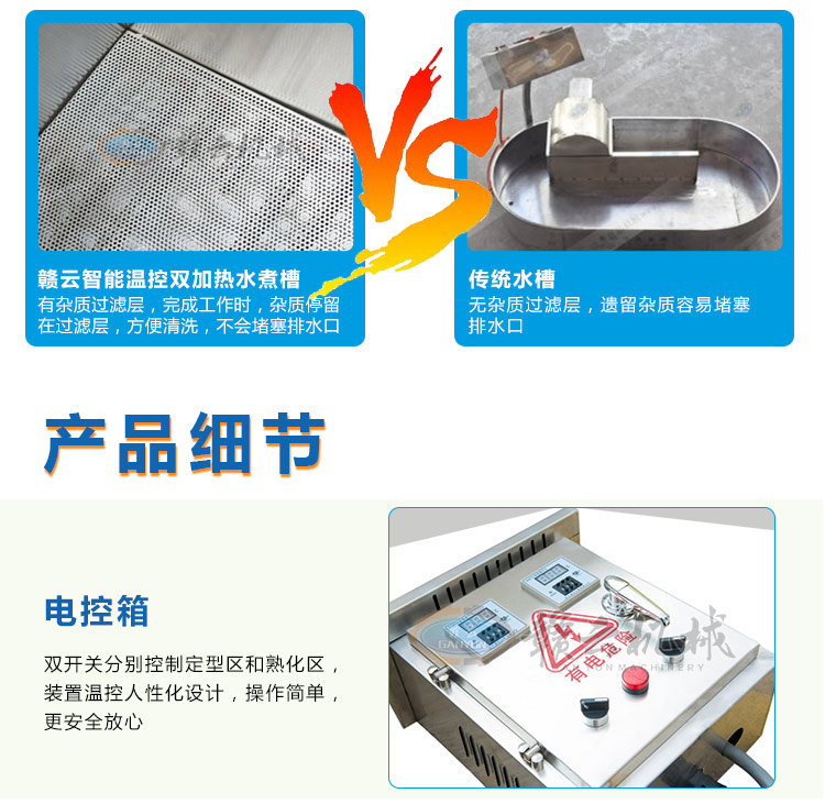 gy-zw-1500型自動(dòng)恒溫定型熟化水槽,也叫智能溫控雙加熱水槽,是我公司新設(shè)計(jì)開發(fā)的,一款適用于貢丸、包心肉丸、獅子頭、墨魚丸、實(shí)心肉丸、蔬菜丸子、米果丸子等定型熟化加熱用水槽。
