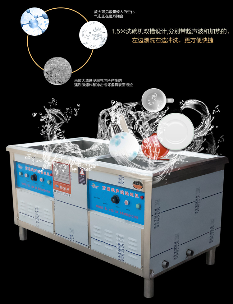 超聲波洗碗機,全自動超聲波洗碗設備采用超聲波沖擊水分子產生微爆炸清洗餐具表面污物,清洗速度快效果好。是食堂、酒店、餐館、餐具消毒清洗配送中心節省人工洗碗成本利器。
