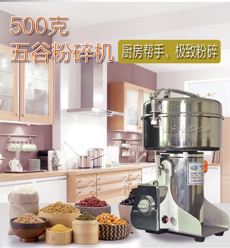 贛云系列多功能粉碎機采用純銅高速電機帶動粉碎刀片將物料快速打成粉末,可用于粉碎五谷、雜糧、田七、阿膠、白叁等,一般粉碎時間1-2分鐘即可,新款粉碎機改保險絲為空氣過載保護器,使用更安全,我廠提供的粉碎機有100克-1000克不同型號的多功能粉碎機。