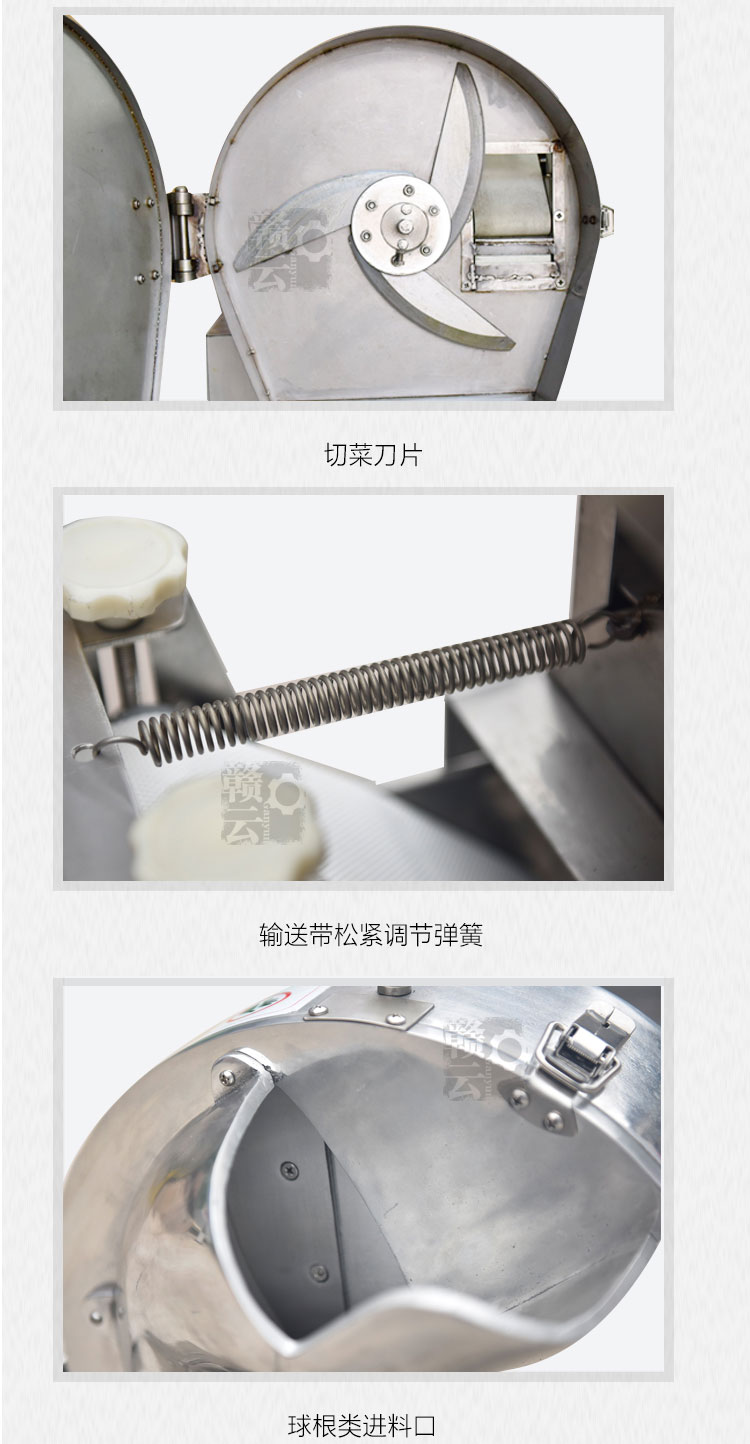 用途:將根莖類蔬菜:馬鈴薯、蕃薯、瓜類、竹筍、洋蔥、茄子以及葉菜類蔬菜:芹菜、大白菜、高麗菜、菠菜等蔬果類切成丁、片、絲條、段、粒狀。