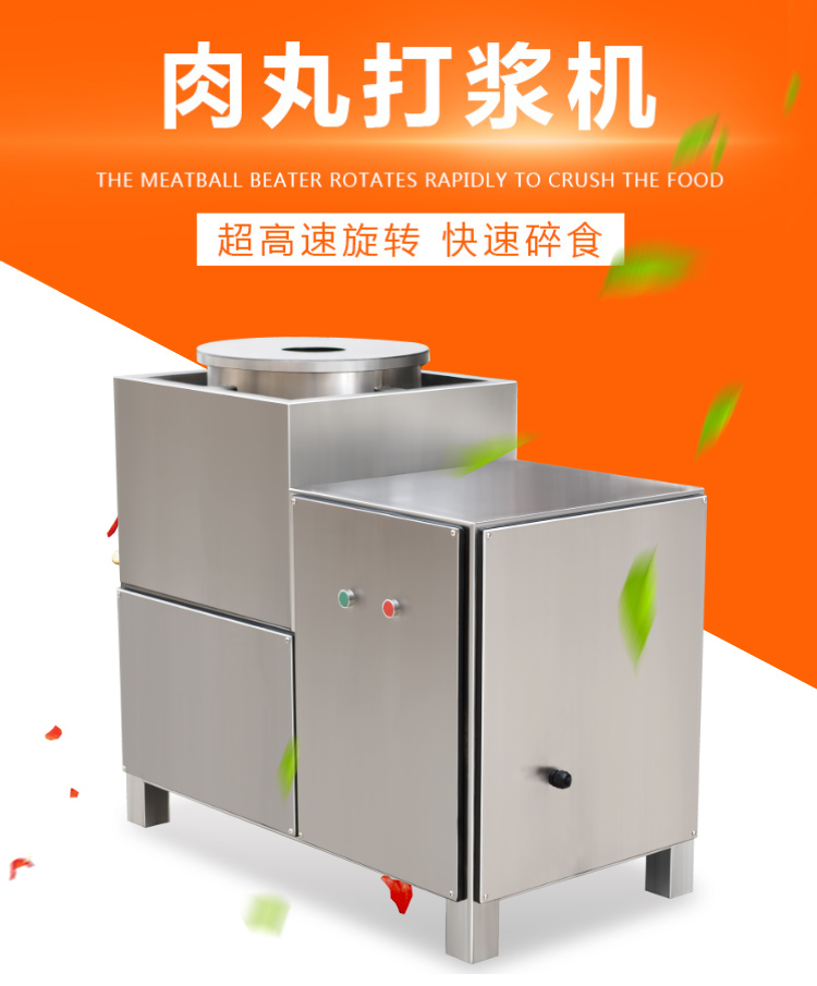 多功能肉丸打漿機擁有高速旋轉,達到快速碎食效果,讓打漿更細膩,讓您告別傳統手工剁肉攪肉打漿,將食材放入打漿機器入料口,食材由上至下翻轉打碎,讓肉餡不松散,細膩有勁道,此款38制冷高速肉丸打漿機,開機2-3分鐘即可完成打肉、配料、攪拌成漿。針對魚肉、豬肉、牛肉、等肉類纖維組織、改善了肉質脂肪纖維,生產出來的丸子外表光滑細嫩、低脂、口感爽脆,彈性好,韌性好,是潮州魚、肉丸的打漿設備。