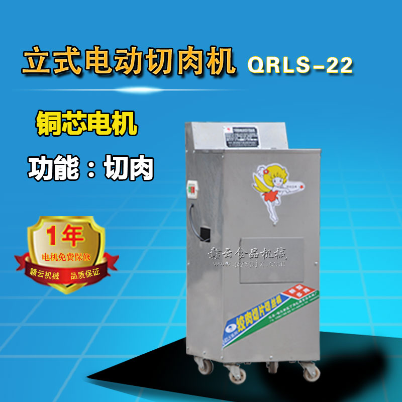 贛云牌立式切肉片肉絲機采用外表不銹鋼,主要從事鮮肉、鹵肉、香腸等肉質品的切肉片、切肉絲加工。切肉刀片有42片,可切3.5mm肉片,動力配備220v-1.5kw-4極銅芯電機。價格為850元,我廠也提供同款機器配備相同功率的鋁線電機,價格為750元。