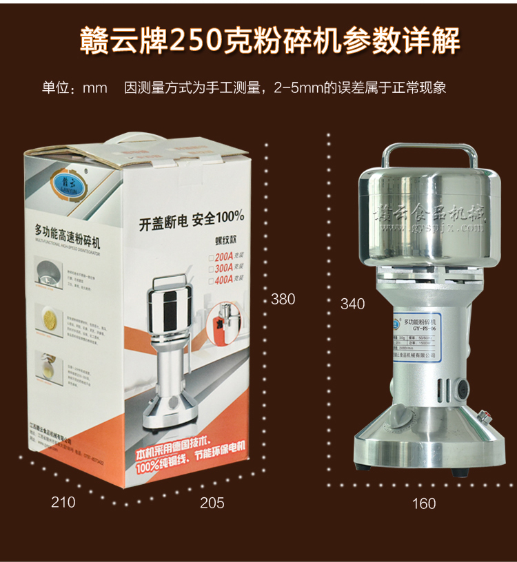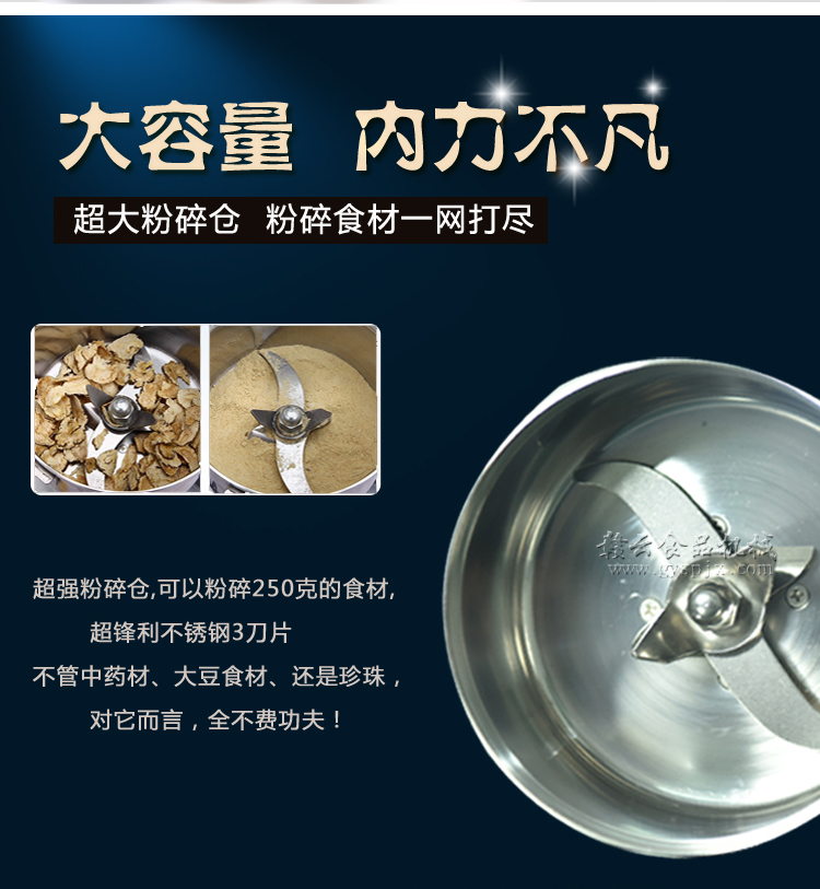 主頁-> 小設備折扣區->250克直立螺紋粉碎機