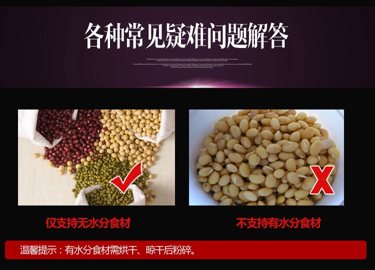 贛云系列多功能粉碎機采用純銅高速電機帶動粉碎刀片將物料快速打成粉末,可用于粉碎五谷、雜糧、田七、阿膠、白叁等,一般粉碎時間1-2分鐘即可,新款粉碎機改保險絲為空氣過載保護器,使用更安全,我廠提供的粉碎機有100克-1000克不同型號的多功能粉碎機。
