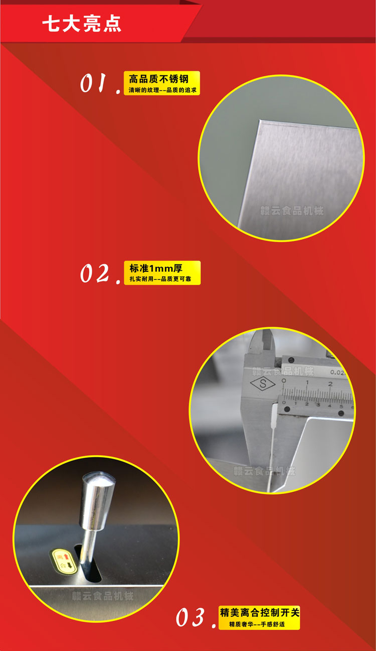 這款立式絞切機加厚升級款,是在原來的立式絞切機基礎上,采用原料升級,高品質430不銹鋼板材,板材更厚,做工更精致,并配銅芯電機,防水開關設計等,綜合性價比高。